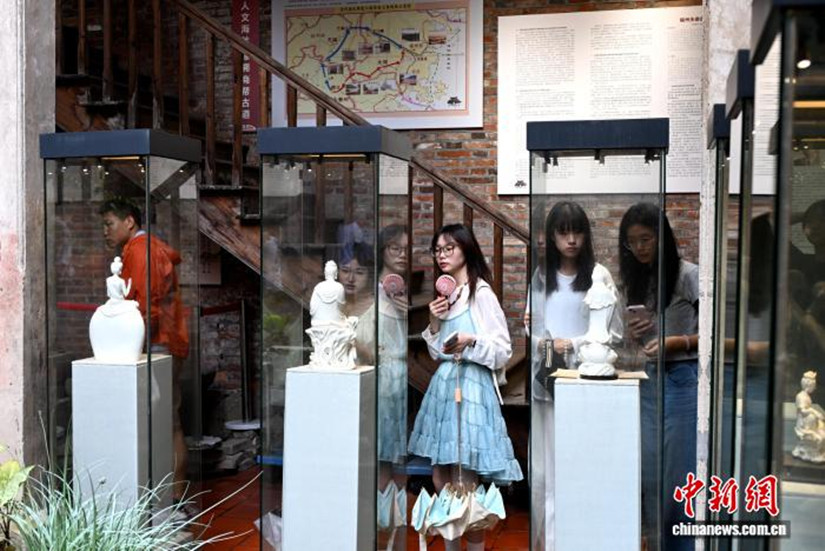 图为展出的福建德化白瓷作品吸引参观者。中新社记者 吕明 摄