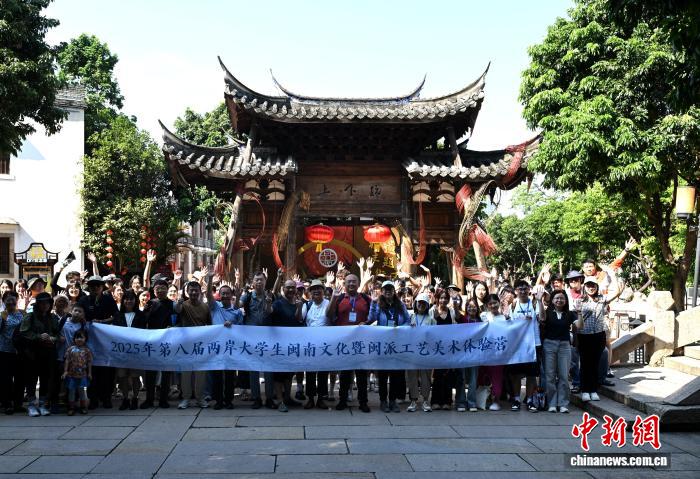 7月31日,来自两岸及澳门地区的22所高校、百余名师生,走进福建福州上下杭历史文化街区参访。此次参访活动是2025年第八届两岸大学生闽南文化暨闽派工艺美术体验营的活动之一。目前,该体验营正在福建举行,两岸师生从泉州到福州,从传统村落到历史文化街区,实地感受中国传统建筑之美。