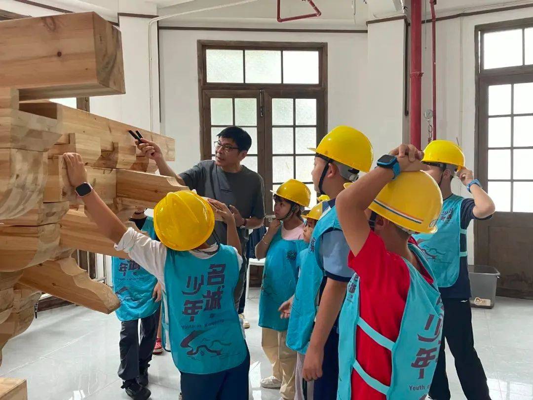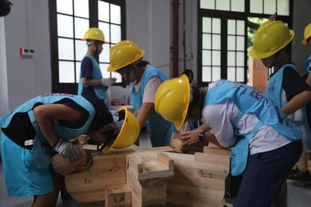在古建筑设计师及非遗传承人老师的指导下,学员们亲手制作了中国传统木结构建筑营造技艺的核心——斗拱模型,并现场还原了1:2复制的华林寺转角铺作结构。这一过程加深了他们对中国古建筑物质功能与精神功能的理解,并让他们深刻体会到古建筑所蕴含的独特历史底蕴与文化魅力。