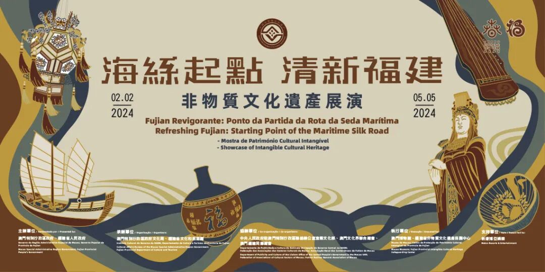 “海丝起点 清新福建——非物质文化遗产展演”于2024年2月2日至5月5日在澳门博物馆举办,本次活动由澳门特区政府、福建省人民政府主办,澳门特区政府文化局、福建省文旅厅承办,澳门中联办宣文部、澳门文化界联合总会、澳门福建同乡总会协办,澳门博物馆、福建省非物质文化遗产保护中心执行。