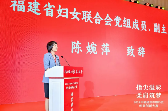 9月19日上午,“2024年福建省巾帼巧匠创业创新大赛”颁奖仪式在泉州市德化县举行。福建省妇联党组成员、副主席陈婉萍出席颁奖仪式并致辞。