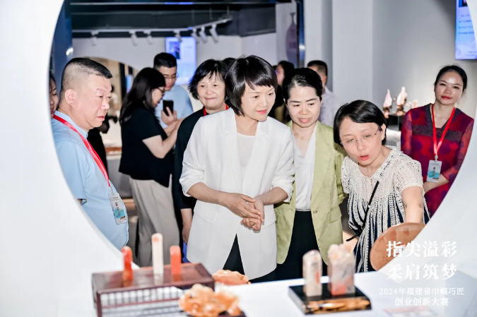 陈婉萍在致辞中表示,福建工艺美术已成为传播“福”文化、带领群众增收致富的重要载体。希望广大巾帼巧匠牢记习近平总书记殷切嘱托,坚定文化自信,争做建设者倡导者奋斗者,以生动的笔触勾勒福建的山水人文,用指尖艺术织就一幅幅致富新图景。希望各级妇联组织持续写好“联”字文章,积极争取各方资源,着力在政策落实、人才培育、成果转化、典型培树等方面为巾帼巧匠提供更有效更精准更温暖的服务。希望各级党委、政府和社会各界持续关心关注妇女工艺美术产业发展,让越来越多的妇女在奋力谱写中国式现代化福建篇章中创造出彩人生。