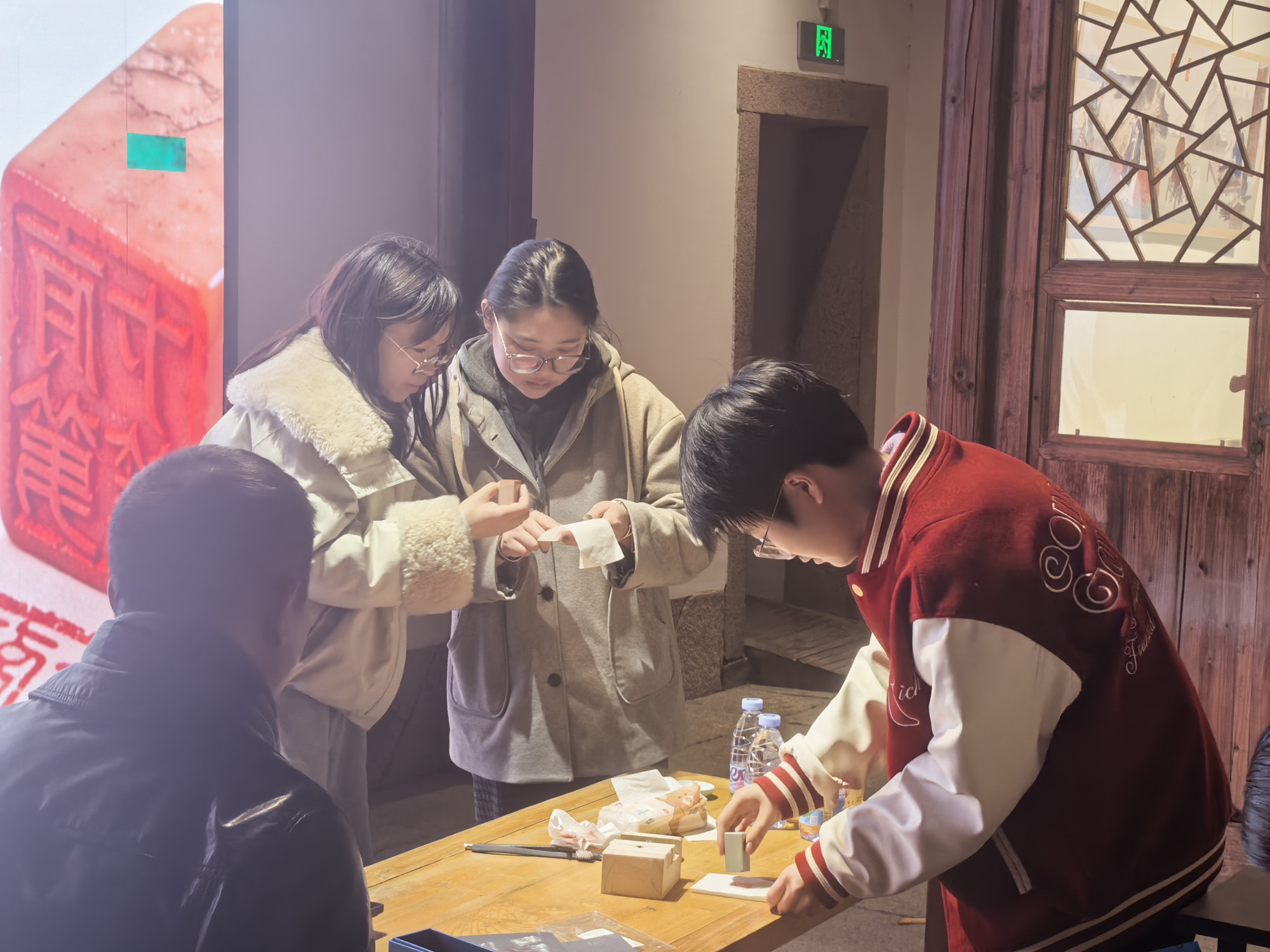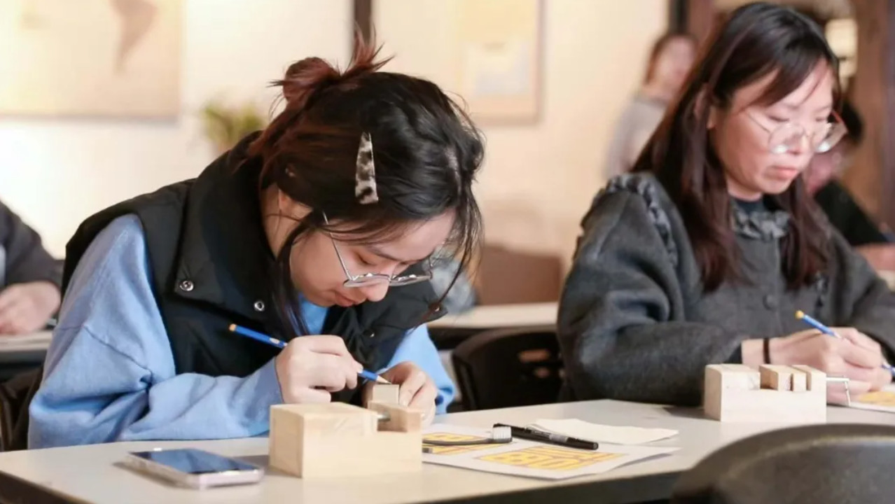 从三千多年前最早的玺印,到如今我们手中的刻刀,老师带大家走过了篆刻的历史长廊。课堂上,每位学员第一次拿起刻刀,在青田石上学刻“福”字——从设计印稿到反写上石,原来每个笔画都藏着讲究。