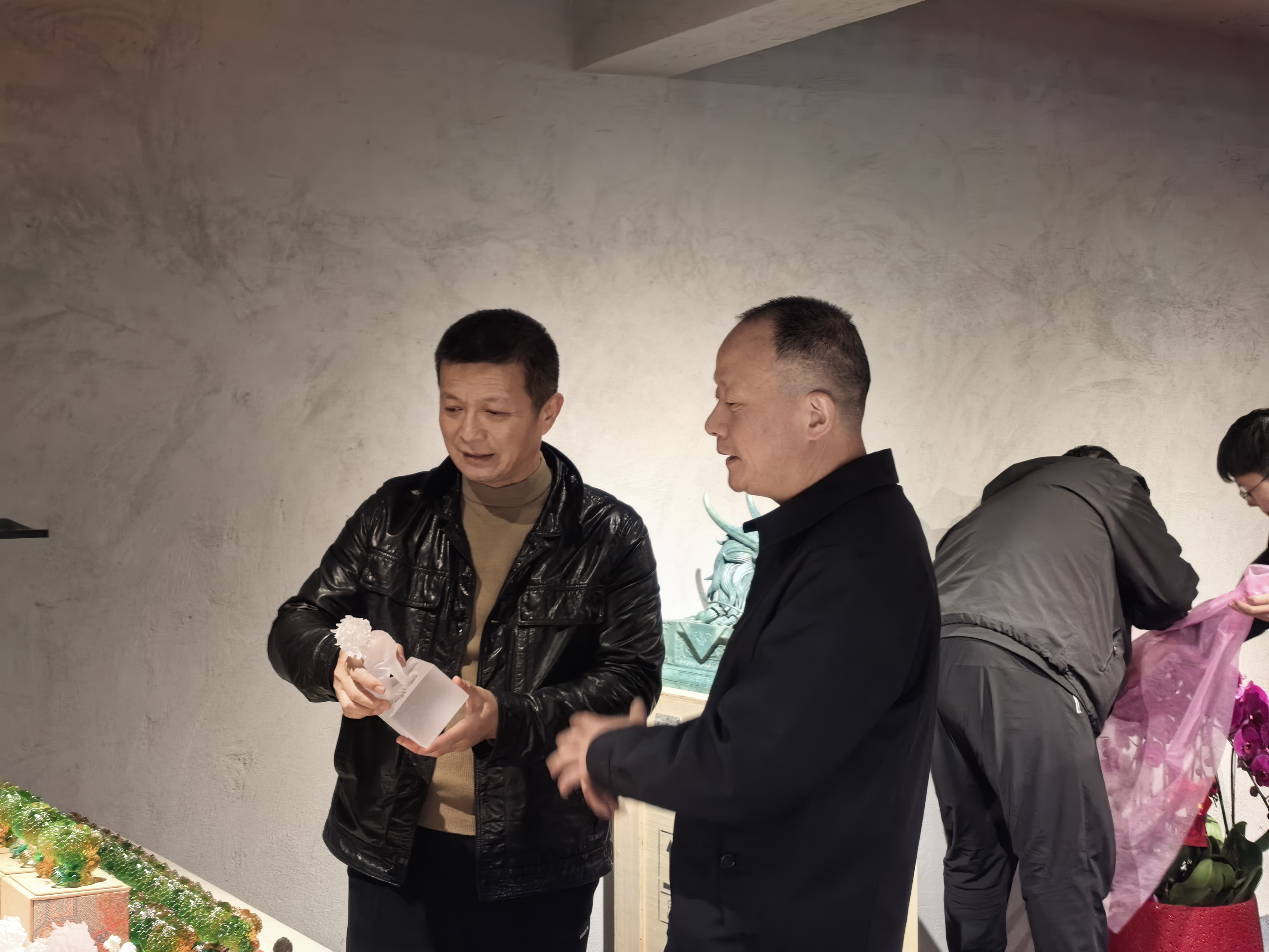 慰问中,刘广辉区长与王长坤亲切交流,详细了解其创作研究、技艺传承、人才培养及工作室运营等情况,认真听取对台江区非遗保护与文化产业发展的意见建议。刘广辉区长对王长坤长期坚守非遗一线、深耕寿山石雕技艺、弘扬闽都优秀传统文化所作出的贡献给予充分肯定,并就进一步做好非遗传承工作提出要求:要坚守匠心、守正创新,持续打磨技艺、培育新人,推动寿山石雕这一特色非遗活态传承;要紧扣台江文旅融合发展布局,用好上下杭、闽江之心等平台载体,推动非遗技艺与文创、展示、体验相结合,让传统工艺更好融入当代生活、走向大众;区政府及各相关部门将持续加大关心支持与服务保障力度,完善扶持政策、搭建展示交流平台,全力为非遗传承人潜心创作、传承发展创造良好环境,助力台江非遗事业高质量发展。